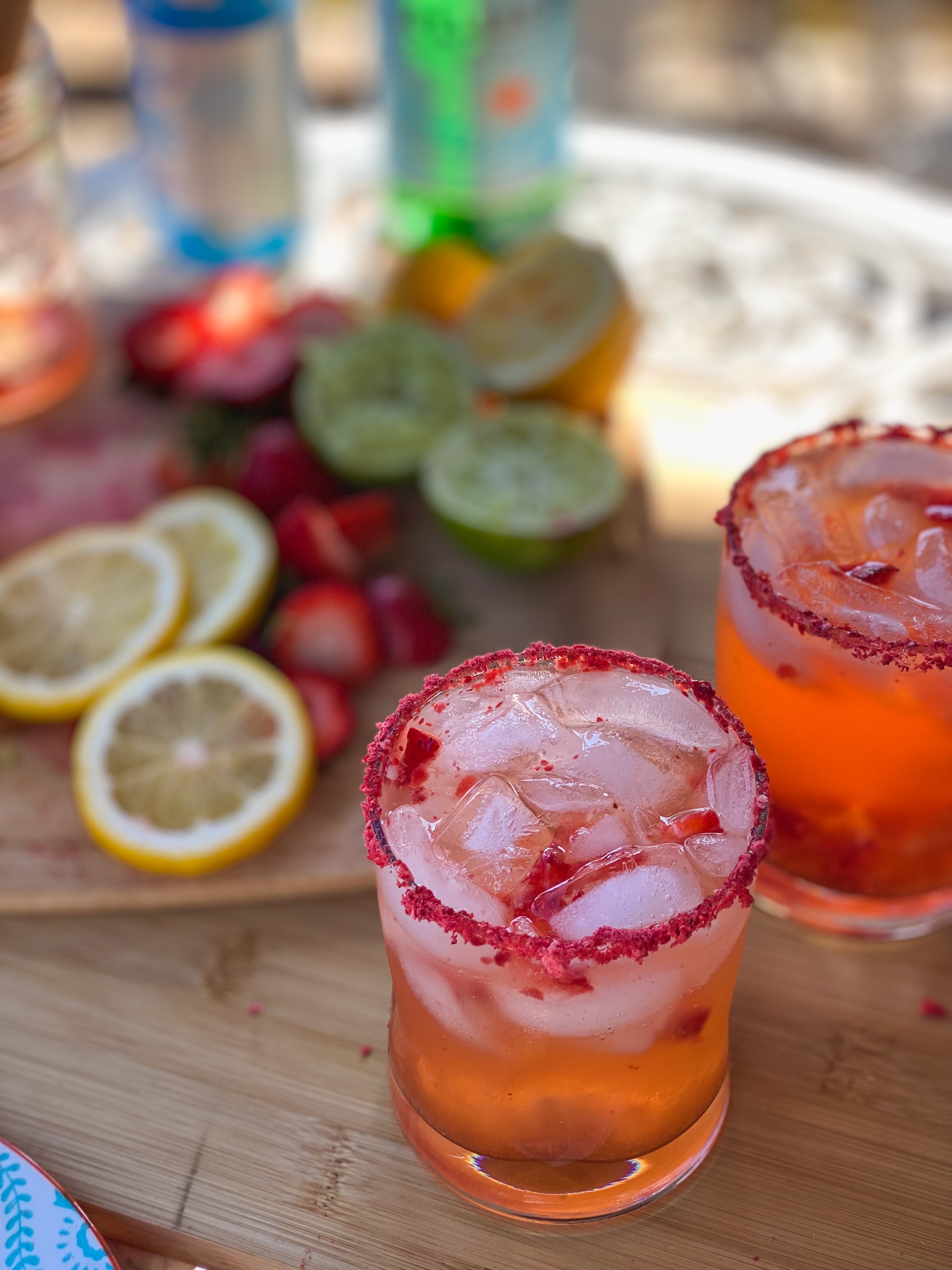 - To make the spritzer, fill a 32 ounce pitcher or carafe halfway with ice. Add strawberry mixture before filling the rest with ice.