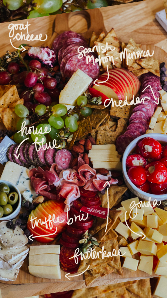 What’s a charcuterie board without cheese? I let my cheese choices lead the way to what else should be on the board.