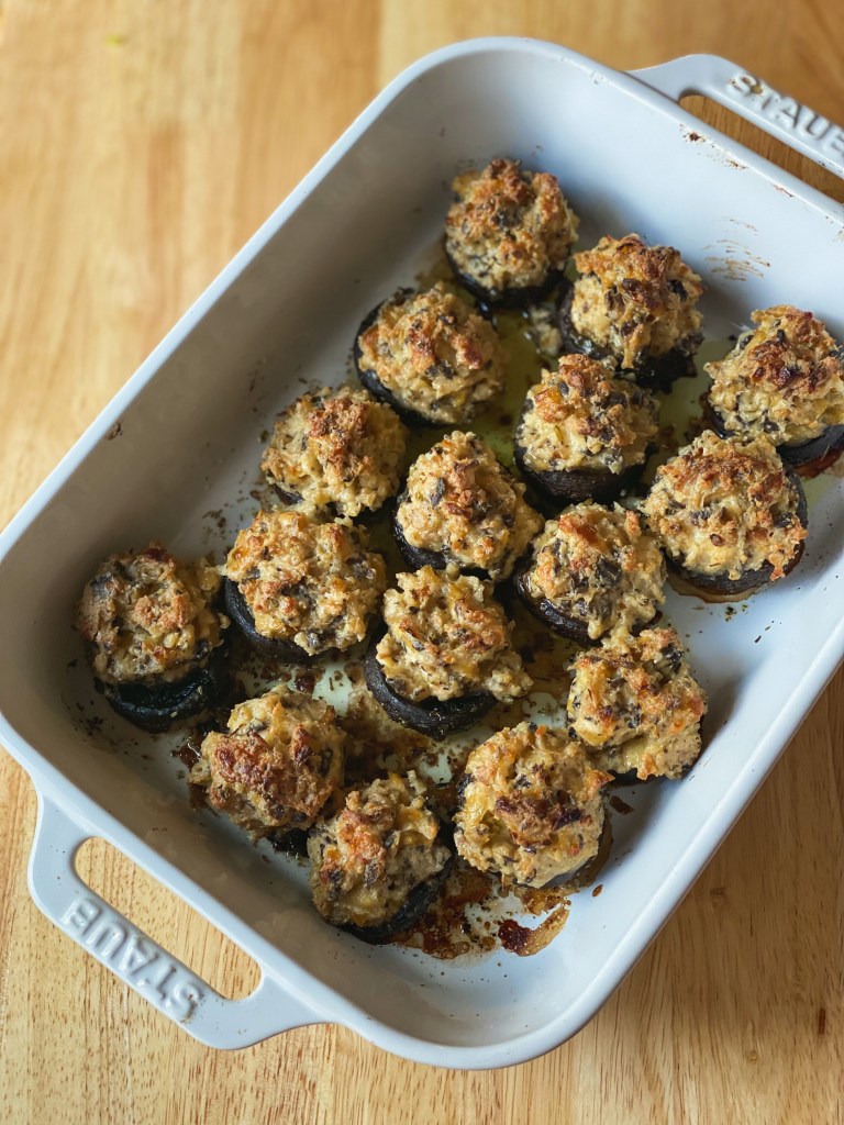 - Bake for 20 – 30 minutes, or until each stuffed mushroom has a crispy, golden brown top.