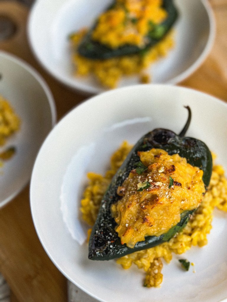 - Slowly add the vegetable broth to the rice 1/2 cup at a time – continually stirring and allowing the rice to soak up most of the liquid before adding more. Repeat this step until rice is Al dente and creamy. This will take about 20-25 minutes.