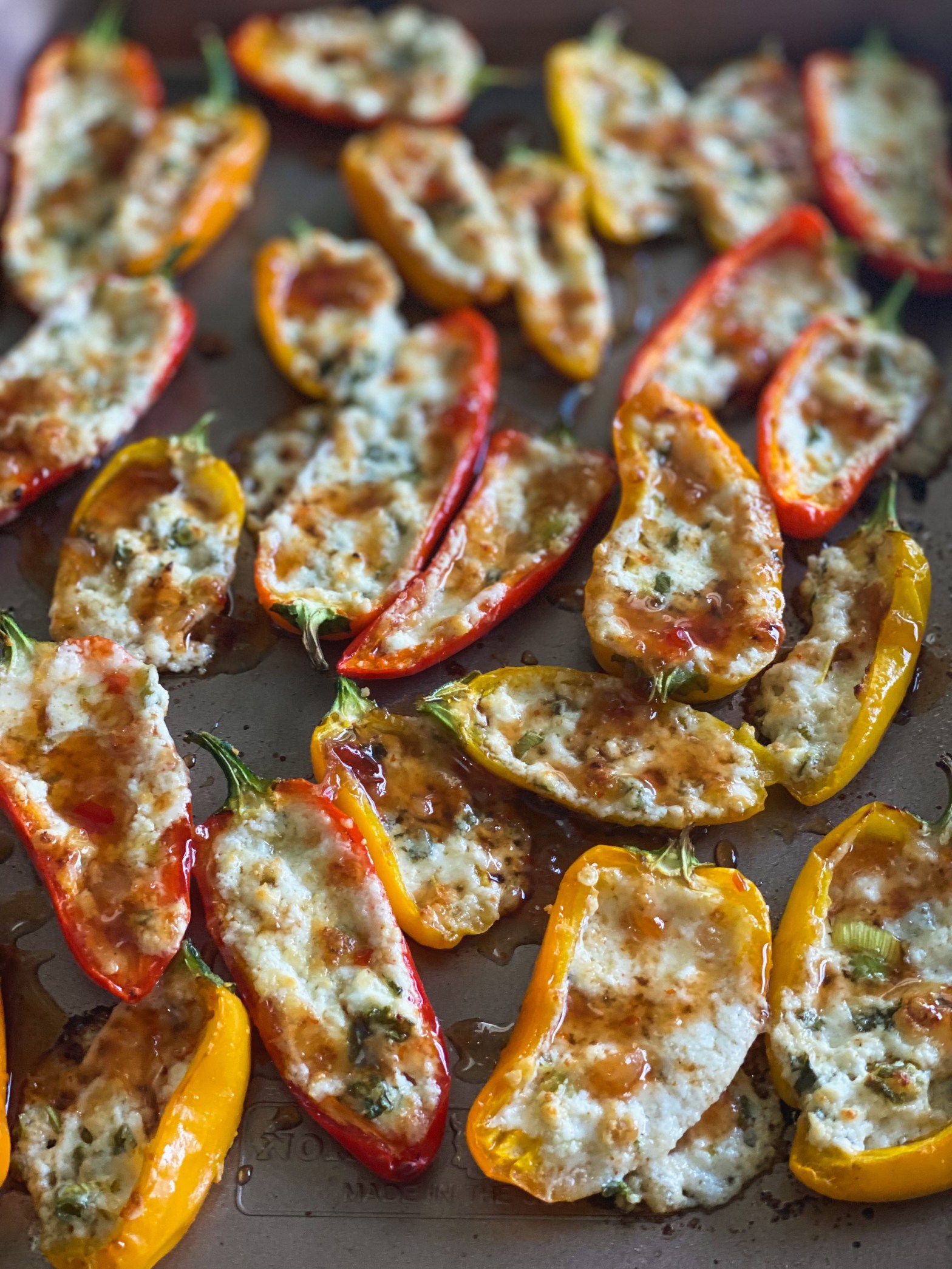 Fontina & Goat Cheese Stuffed Peppers with Sweet Chili Balsamic Drizzle
