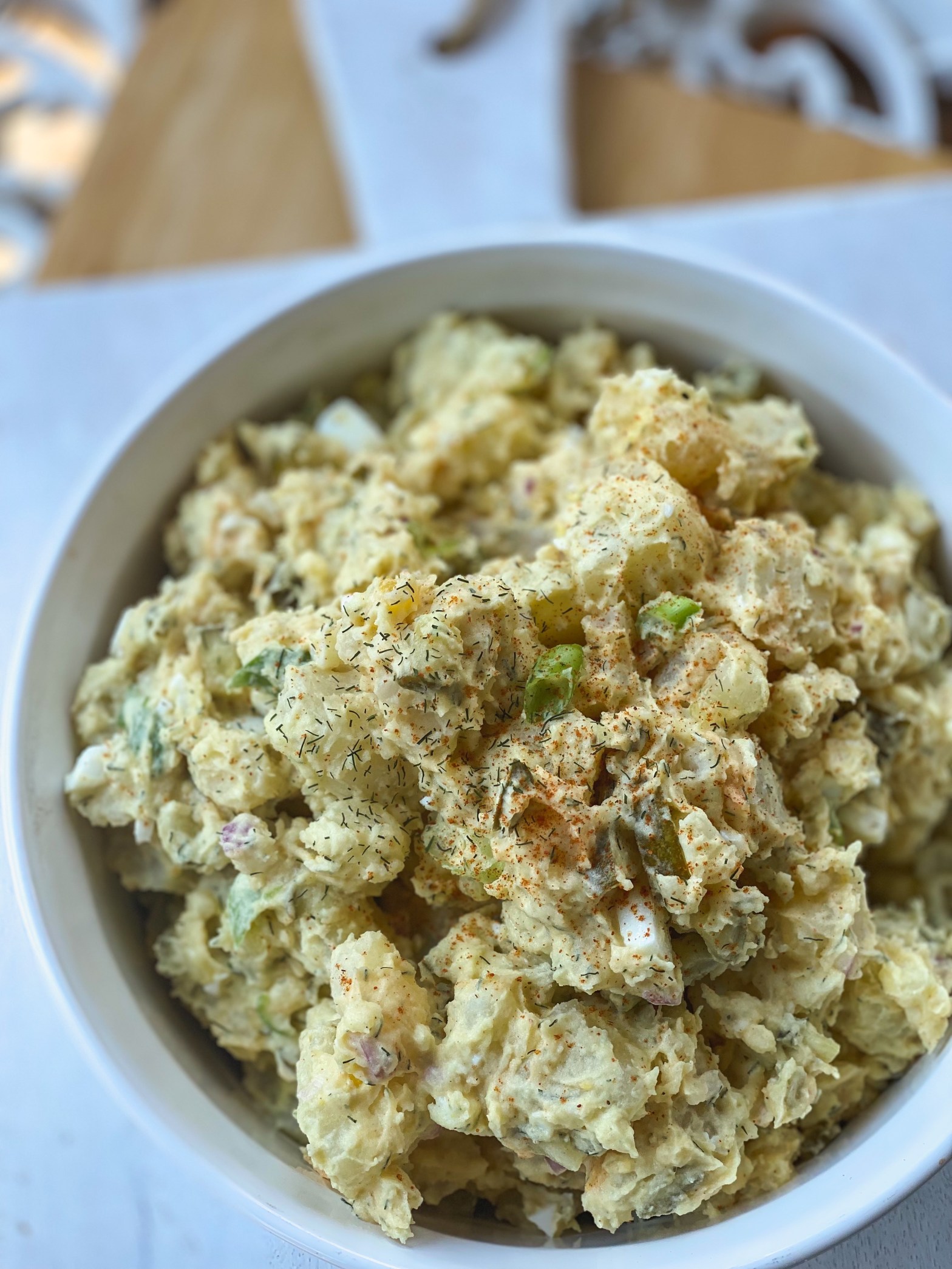 ACTIVE TIME: 15 MIN. I TOTAL TIME: 2 HR. I SERVES: 6 – 8 Ingredients: 10 lbs of russet potatoes, peeled and quartered 4 hard boiled eggs, diced 2 cups of finely chopped Claussen dill pickles 1 1/2 cups of mayonnaise 1/2 cup Dijon mustard 1/4 cup yellow mustard 1 tablespoon Distilled white vinegar 1Continue reading “Jojo’s Classic Potato Salad”