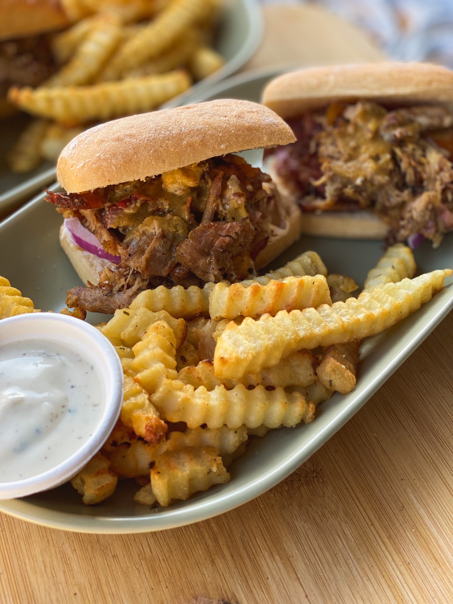 Smoked Pulled Pork Sandwiches with Ranch Fries