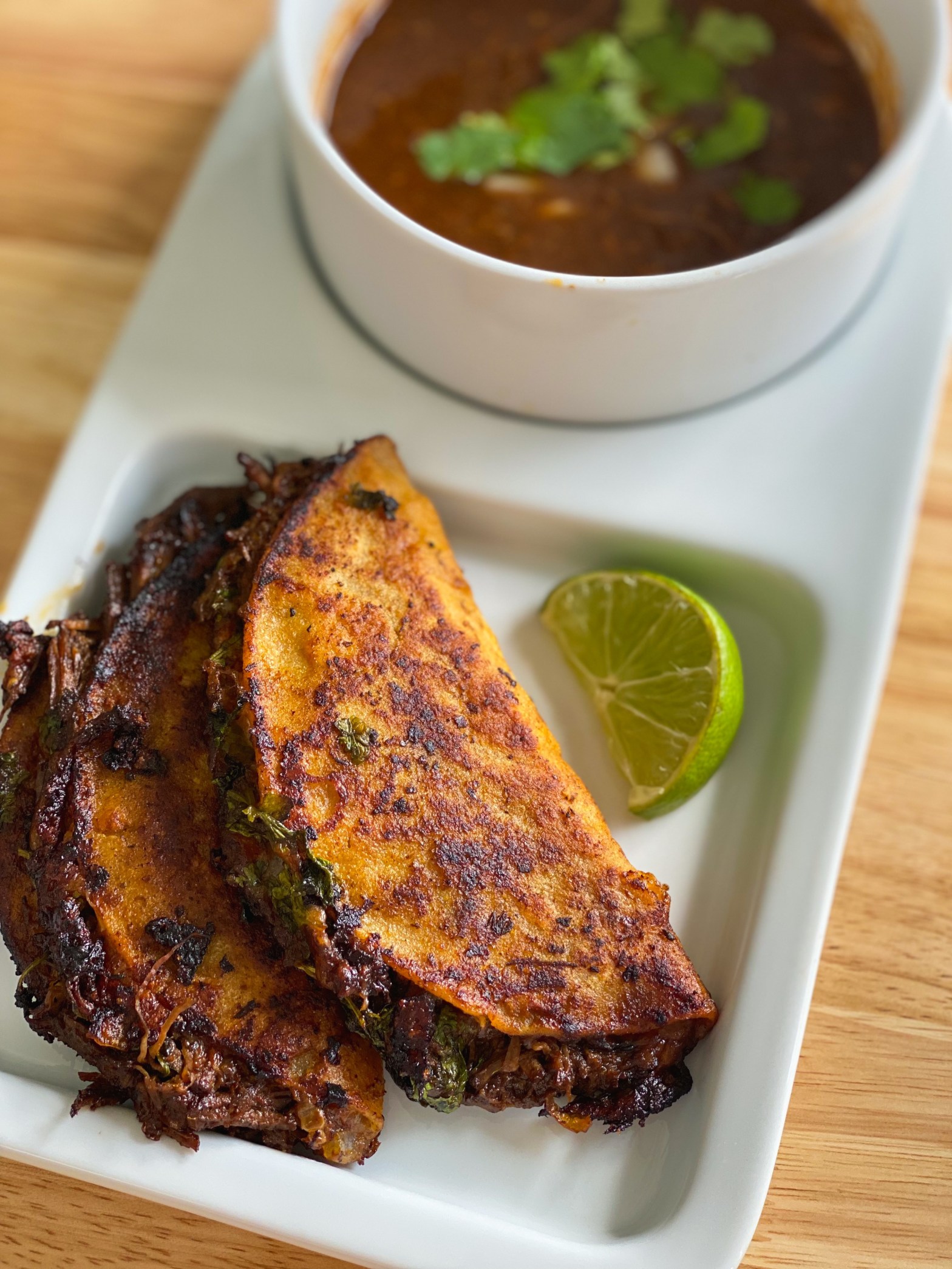 ACTIVE TIME: 30 MIN. I TOTAL TIME: 6-8 HR. I SERVES: 6 – 8 Ingredients: Meat: Chile Sauce: Tacos: Instructions: Meat Chile Sauce Tacos
